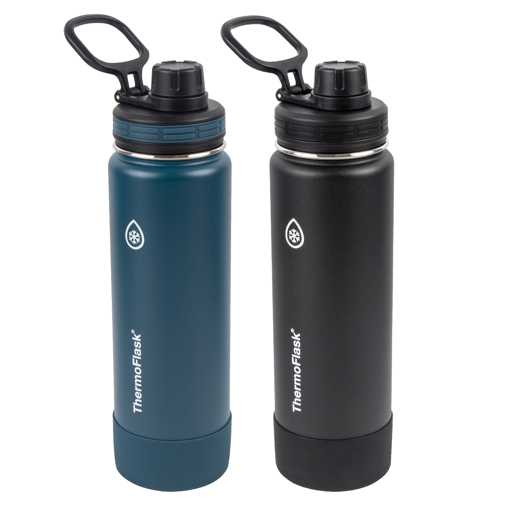 - Includes 2 x 24oz/0.71L ThermoFlask® Insulated Stainless Steel Water Bottles with Spout Lid